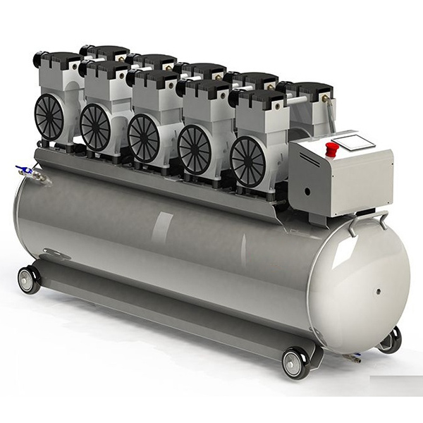 Jame naudojama be alyvos tepimo technologija, užtikrinanti, kad išeinantis oras būtų be alyvos, sausas ir švarus, atitinkantis aukštus medicinos pramonės standartus. Įrenginys, kuriame įdiegta automatinė valdymo sistema, gali tiksliai matuoti slėgį, automatiškai įsijungti ir išsijungti, kad oro slėgis būtų stabilus, ir yra plačiai naudojamas įvairiose srityse, pvz., dantų gydyme, mokyme ir moksliniuose tyrimuose, laboratorijose, tiksliųjų prietaisų gamyboje, farmacijos pramonėje, maisto perdirbime ir kt.