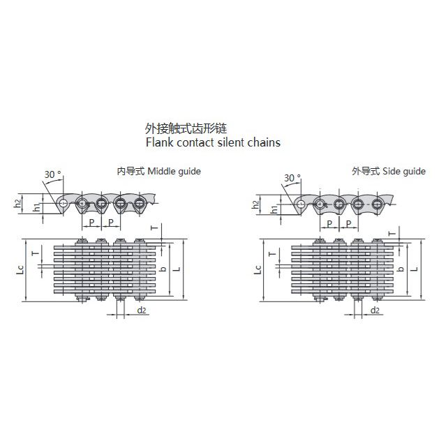 - Išorinis dantytas grandynas:Išorinis tiesus grandinės plokštės dantų profilis sąveikauja su krumplių dantimis, užtikrinant stabilų veikimą. Išsiskiria didesniu daugiakampio efektu, padidintu smūgiu, vibracija ir triukšmu.