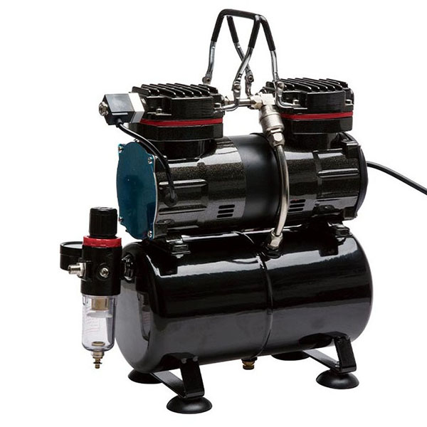 Remiantis pagrindiniu stūmoklinio suspausto oro principu. Elektros variklis suka stūmoklį cilindro viduje, oras įsiurbiamas į cilindrą ir suspaudžiamas, kad susidarytų aukšto slėgio oras. Dėl be alyvos konstrukcijos suspaudimo metu oras nėra užteršiamas alyva. Talpyklos paskirtis – laikyti suspaustą orą ir prireikus užtikrinti pastovų oro srautą. Slėgio jungiklis ir slėgio reguliatorius leidžia tiksliai reguliuoti oro išėjimo slėgį ir srautą.