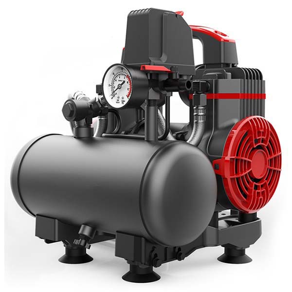 Nešiojamas be alyvos oro kompresorius naudoja be alyvos stūmoklinę suspaudimo technologiją. Elektros variklis suka stūmoklį, kuris suspaudžia aplinkos orą į talpyklą. Be alyvos konstrukcija apsaugo nuo alyvos rūko taršos, užtikrinant gryno oro išėjimą. Po filtravimo suspaustas oras tiekiamas į pneumatinį įrankį. Oro aušinimo sistema veiksmingai mažina vidinę temperatūrą, užtikrinant nepertraukiamą veikimą, o variklio apsaugos sistema automatiškai išjungia maitinimą perkrovos ar neįprasto įtampos atveju, apsaugodama įrangą.