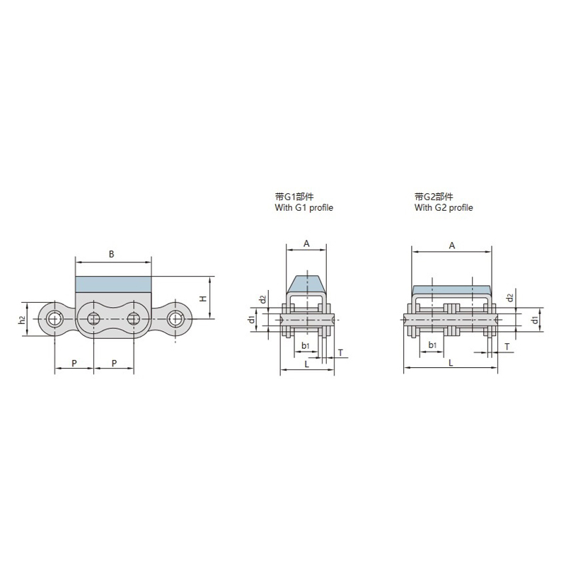 Guminės pritvirtintos plokštės grandinės pagrindinė grandinė atitinka tarptautinius standartus, tokius kaip ISO, ASME, ANSI, DIN ir JIS, užtikrinant plačią taikymo sritį ir keičiamumą. Guminė viršutinė plokštė pagaminta iš aukštos kokybės medžiagų, tokių kaip NR, NBR ir PUR, užtikrinančių puikų elastingumą ir atsparumą dilimui. Guminė viršutinė plokštė gali būti suprojektuota įvairių formų ir būsenų pagal konkrečius taikymo reikalavimus.